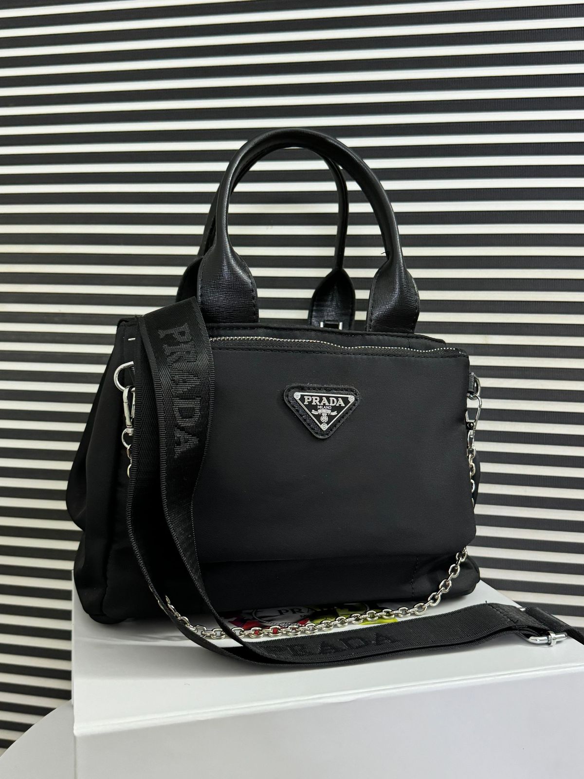 A sophisticated two-piece set combining a large tote with a detachable pouch for versatile use.