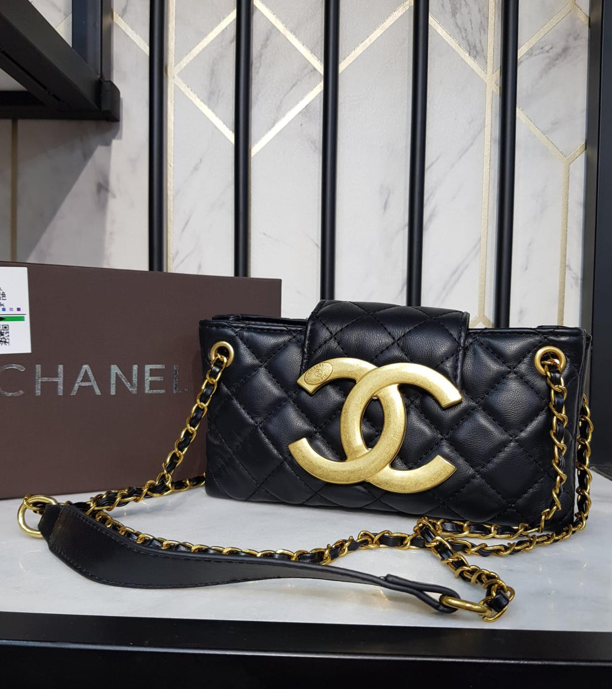 Details: - Dimensions: 22 × 11 × 5 cm - Chanel CC logo - Magnetic flap closure - Chain link shoulder strap - Inside 1 slip pocket - Box & dust bag included