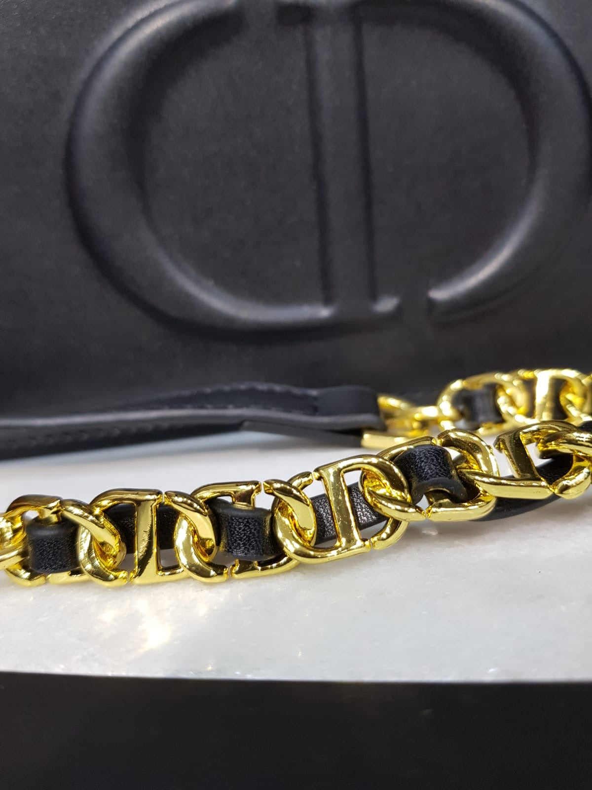 Product details: - Dimensions: 20 × 11 × 4 cm - CD signature on the front - Flap closure - 4 card slots - 1 interior patch pocket - Top handle - Removable, adjustable strap - Box & Dust Bag included
