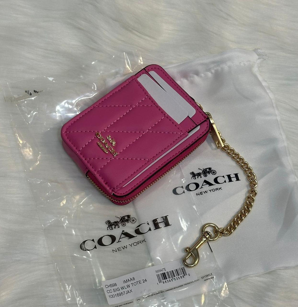 Gold-tone hardware with bags.