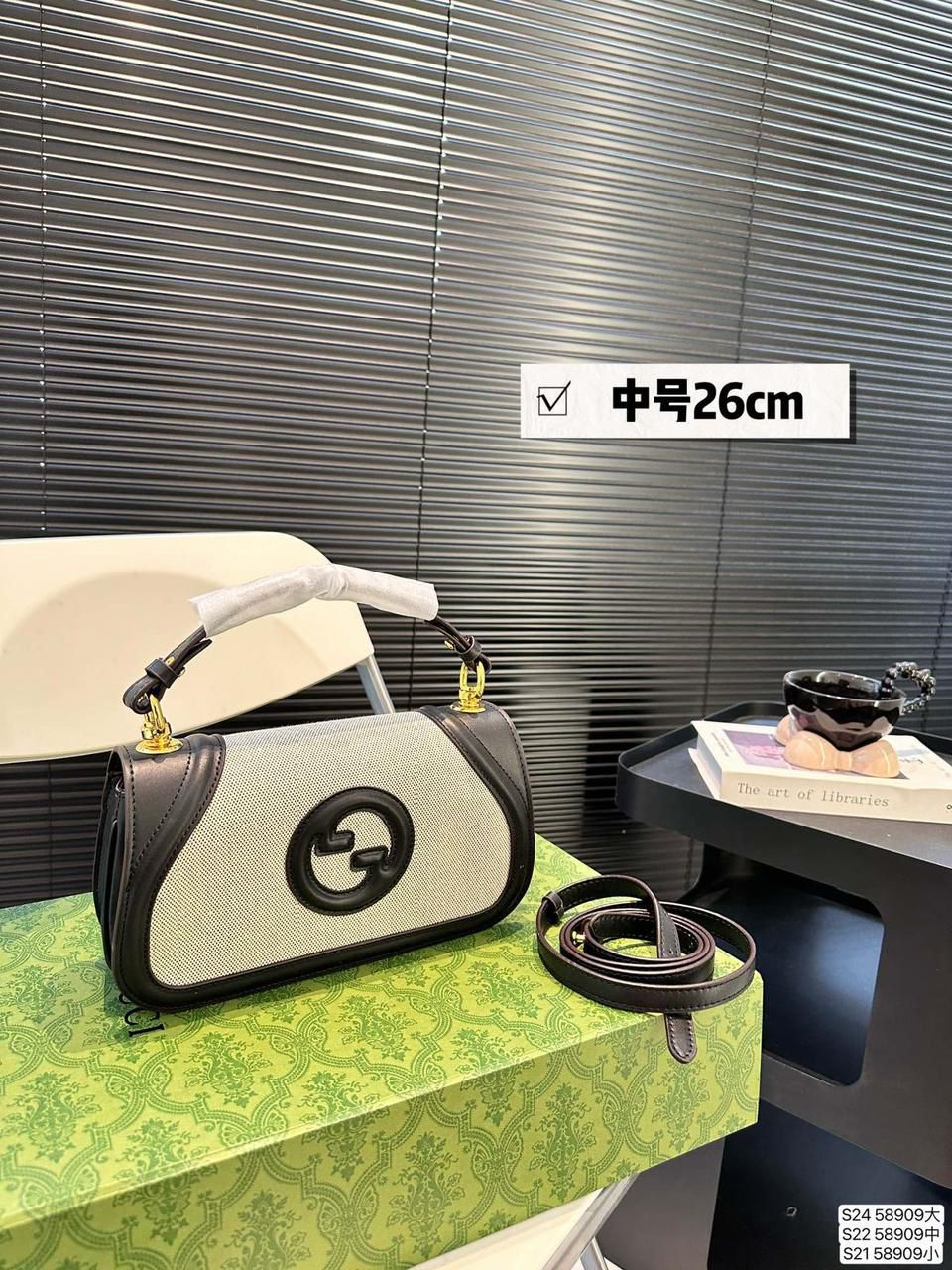 Product details: - Dimensions: 26 x 15 x 7 cm - Round Interlocking G - Magnetic closure - Smooth leather - Leather trim - Gold-toned hardware - Inside: 1 zip pocket - Outside: 1 open pocket on the back - Top handle - Detachable & adjustable shoulder strap - Box & dust bag included