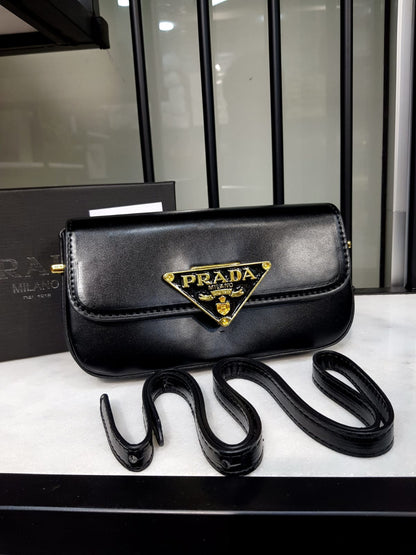 - Dimensions: 21 x 11 x 4.5 cm - Iconic triangle logo on the front - Push-lock clasp on the flap - Adjustable shoulder strap - Metal hardware - Inside slip pocket - Box & Dust bag included