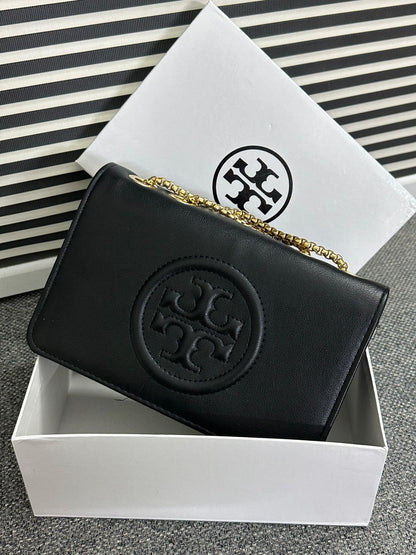This Tory Burch Double Chain Shoulder Bag offers both elegance and functionality, complete with a brand card and box for a luxurious presentation.