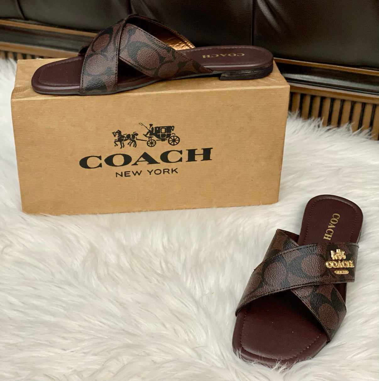 - Signature Coach Style: Featuring the iconic Coach logo and detailing, these sandals are a symbol of quality craftsmanship and refined taste. - Comfortable Design: With cushioned insoles and adjustable straps, these sandals offer a comfortable fit that's perfect for all-day wear. - Versatile Wardrobe Staple: The timeless design of these sandals makes them a versatile addition to your shoe collection, suitable for both casual and dressy occasions. - Quality Craftsmanship: Crafted from high-quality materials, these sandals are made to last, ensuring durability and style. - Perfect for Any Occasion: Whether you're running errands or heading out for a night on the town, these sandals are sure to elevate your look.