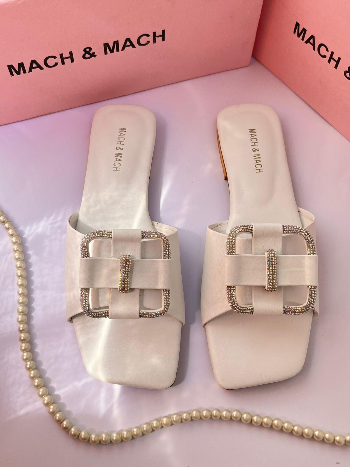 - Iconic Design: Featuring the iconic Mach & Mach logo, these sandals are a statement of timeless elegance and sophistication. - Comfortable Fit: With a cushioned insole and secure straps, these sandals are as comfortable as they are stylish, perfect for all-day wear. - Versatile Wardrobe Staple: The classic design of these sandals makes them a versatile addition to your wardrobe, effortlessly complementing both casual and formal outfits. - Quality Craftsmanship: Handcrafted in Italy, these sandals are made to the highest standards of quality, ensuring durability and style. - Available in Multiple Styles: Choose from a range of styles, including slides, heels, and flats, to find the perfect pair to suit your personal style. - Elevate Any Look: Whether paired with jeans and a t-shirt or a cocktail dress, these sandals add a touch of luxury to any outfit.