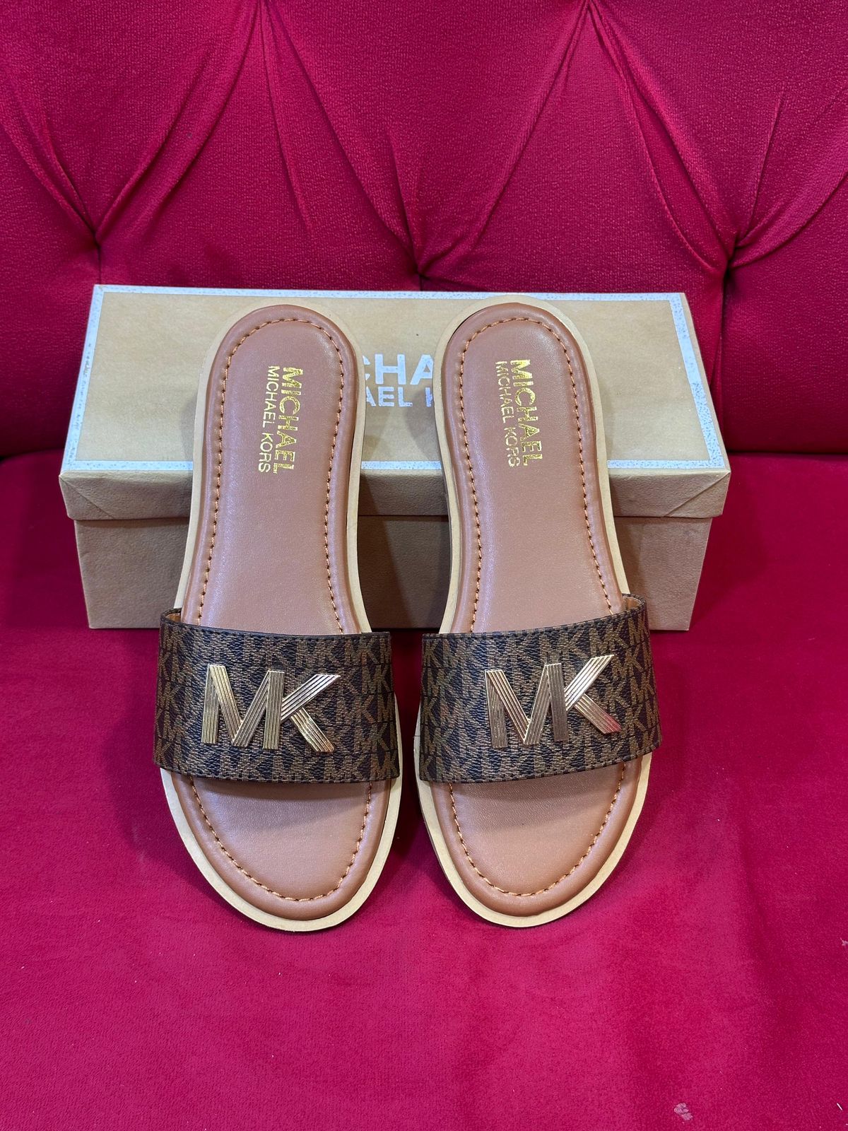 • Features iconic Michael Kors logo pattern or emblem on the upper