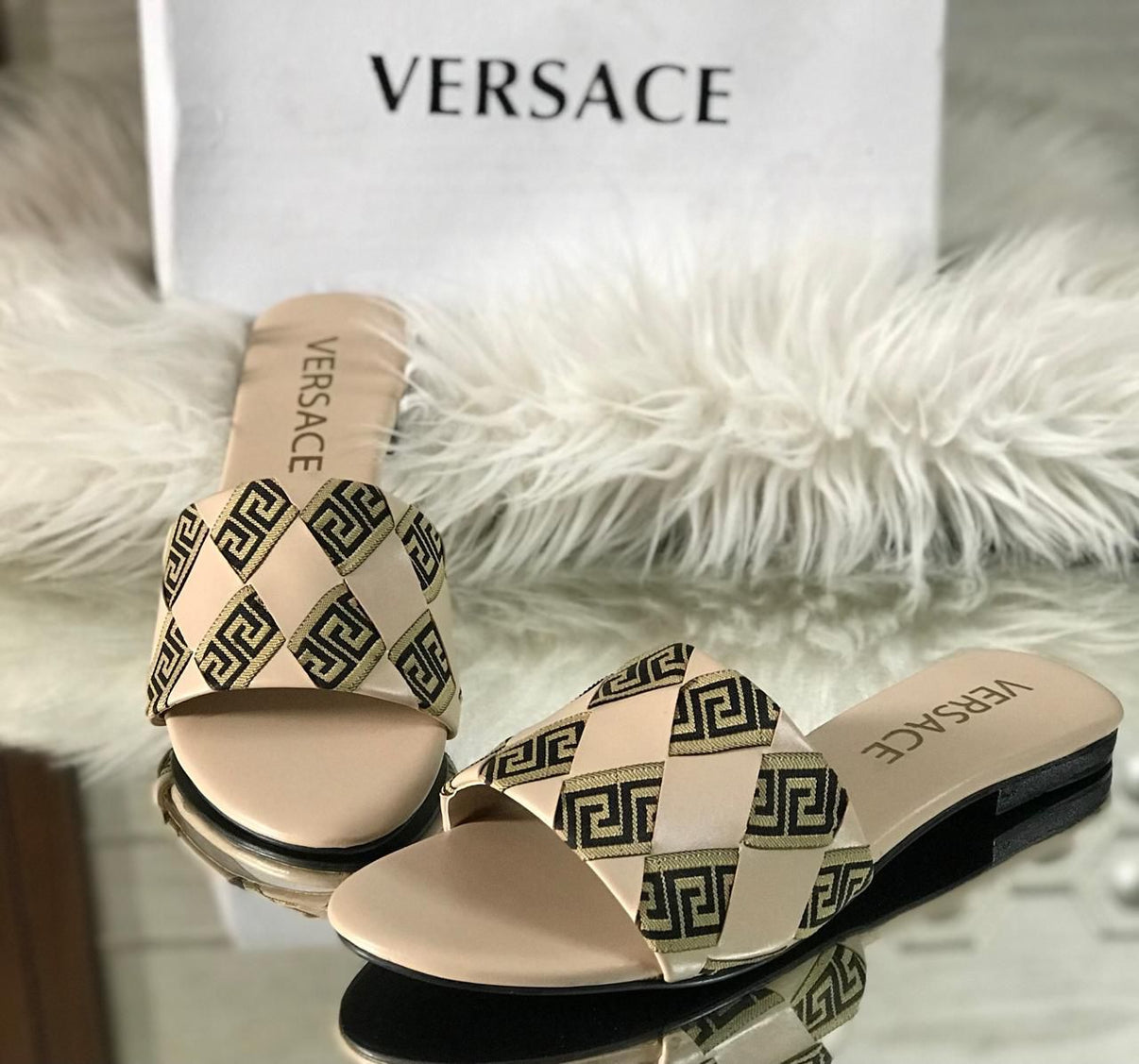 Luxury Design – Showcases Versace’s bold yet refined aesthetic with a cross-stitched pattern.
