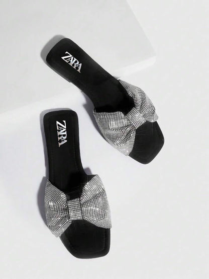 - Luxurious Glamour: Step into luxury with these Zara sandals, designed for the fashionista who loves to make a statement. - Iconic Style: Featuring the signature Zara sparkle and glamour, these sandals are a must-have for any fashion-forward wardrobe. - Comfortable Elegance: With cushioned insoles and supportive straps, these sandals offer a comfortable fit that doesn't compromise on style. - Versatile Chic: The timeless design of these sandals makes them a versatile addition to your shoe collection, perfect for both daytime and evening wear. - Crafted to Perfection: Made from high-quality materials, these sandals are crafted with meticulous attention to detail, ensuring durability and style. - Elevate Your Look: Whether paired with jeans and a blouse or a cocktail dress, these sandals add a touch of glamour to any outfit.