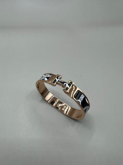 Often adorned with iconic Hermès patterns, such as the Clic Clac H, chain d’ancre motifs, or equestrian themes, highlighting the brand's heritage.