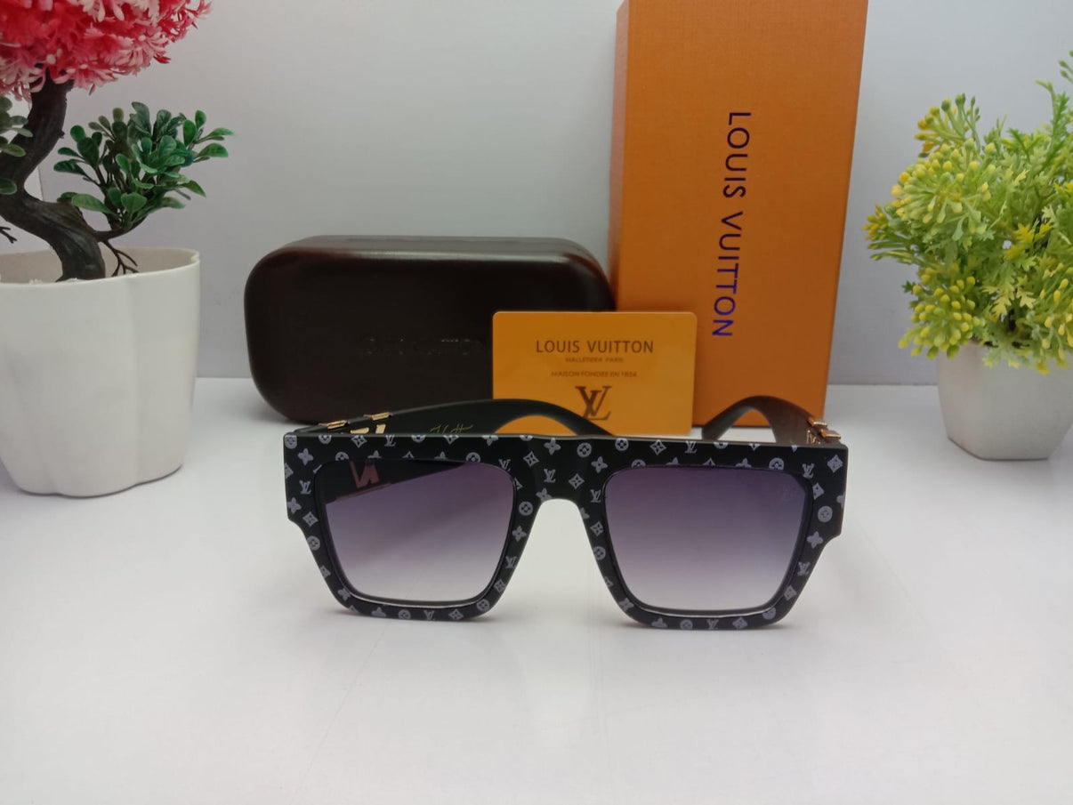 - Material: High-quality materials such as acetate, metal, or a combination, ensuring durability and a premium feel. - Lenses: UV-protective lenses, available in various tints and gradients, offering both style and eye protection. - Frame Style: Diverse frame styles ranging from classic aviators and oversized square frames to modern cat-eye and sleek round designs. - Branding: Signature Louis Vuitton branding, including engraved LV logos on the temples, lens, or monogram-printed arms. - Comfort: Lightweight yet sturdy construction, designed for a comfortable fit with adjustable nose pads or smooth arm tips. - Versatility: Suitable for both casual and upscale occasions, adding a touch of elegance to any outfit. - Packaging: Comes with a protective Louis Vuitton case and cleaning cloth, presented in luxury packaging, making it ideal for gifting. - Fit: Designed to fit a wide range of face shapes, offering options in various sizes and styles.